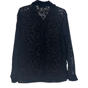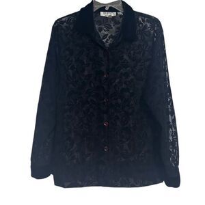 Vintage Truffles Blouse Womens Medium Black Jacquard Velvet Burnout Floral Sheer