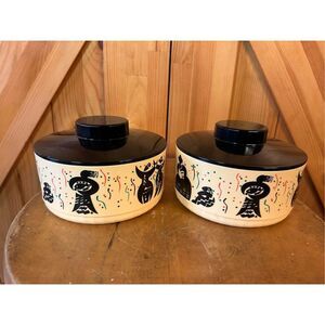 Vintage Tupperware Black Americana Memorabilia African Reggae bowls celebrate lot of 2 approx. 2.5"high by 5" wide (8458) minor wear a few light markings on lids hard to see