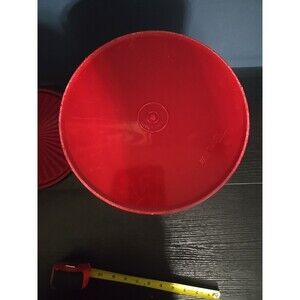 Elevate your kitchen's vintage appeal with the Tupperware Servalier 811-13 canister, showcasing the iconic "Tulip Quilt" design. This charming piece, dating back to the 1970s, is a delightful nod to the past, with its bright red hue and nostalgic pattern that is sure to spark conversations and admiration for its craftsmanship.