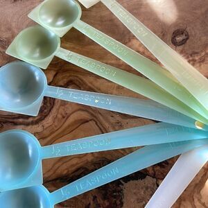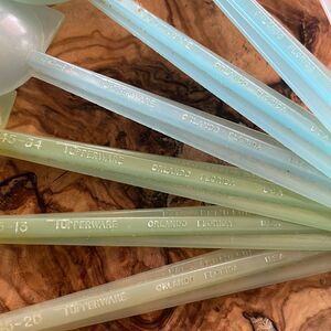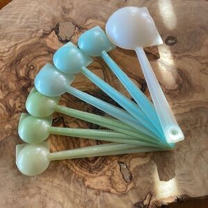 Set of 7 Vintage Tupperware Measuring Spoons, includes 3, 1/2 tsp, 3, 1/4 tsp, 1 tblsp.