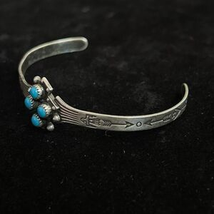 This is a Vintage Turquoise & Marked Sterling Silver Navajo Style Mini Baby Cuff Bracelet