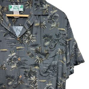 Vintage Two Palms Black and Gold Palmtree Hawaiian Camp Shirt, M