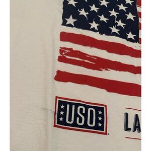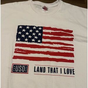 Vintage USO American Flag Graphic T Shirt Bayside Tag USA Made Mens Size XL