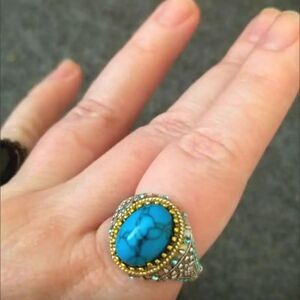 Vintage Unisex Electroplated Two-tone Inlaid Turquoise Ring