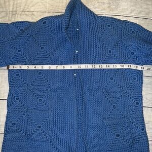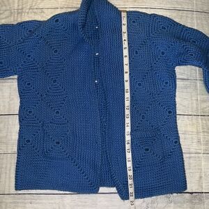 Vintage VTG Handmade Crochet Blue Cardigan Sweater Cottagecore Grannycore