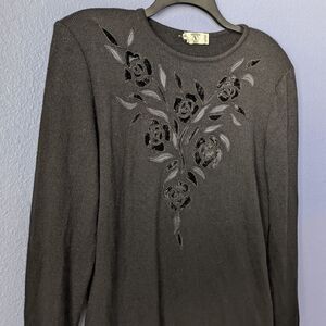 Vintage Valentino Studio Pullover Sweater 100% Wool embroidered Italy 10 Black