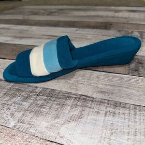 Vintage Vanity Fair Blue Velour House Shoes Slippers Mid Century Glam