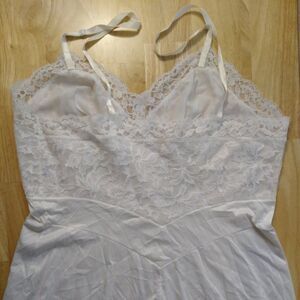 Vintage Vanity Fair White Nylon Satin Lace Lingerie Dress Slip Nightgown 36