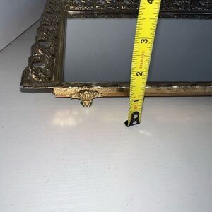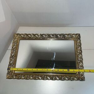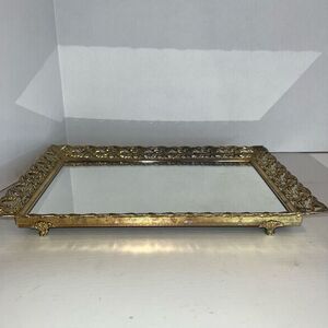 Vintage Vanity Tray Rectangular Mirrored Gold Brass Filigree Edge Footed Back