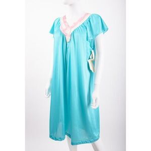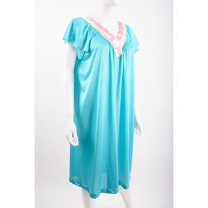 Vintage Vanity Fair Glisanda Nightgown Size M Turquoise Pink NWT. Satin Tricot.