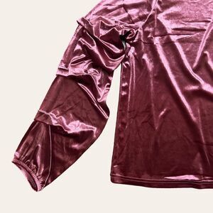 Vintage velvet long sleeve top. Cute folded detail on the sleeve. Very whimsygoth. Incredibly comfortable. By the brand VENUS. Labeled as a size small, has an oversized fit so could easily fit a medium as well, please read and compare measurements to your own carefully!