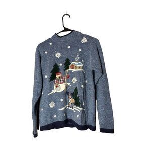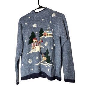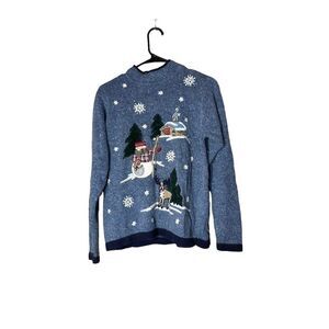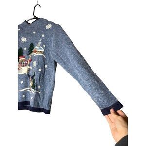 Vintage Victoria Jones Petite Ugly Christmas Sweater Embroidered Size Medium Petite. Great condition light wash wear. Christmas winter theme
