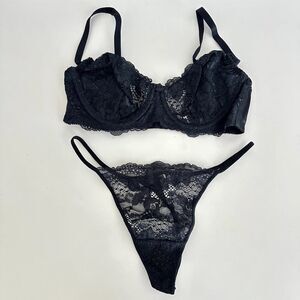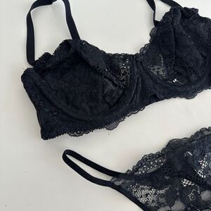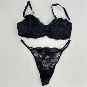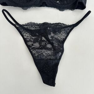Gorgeous romantic black lace bra with underwire and g string thong panty