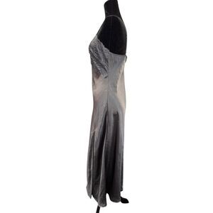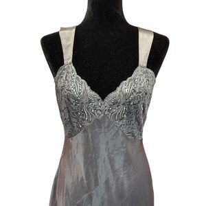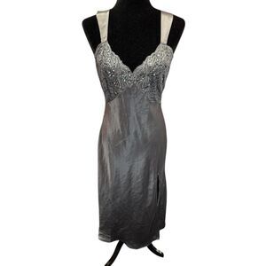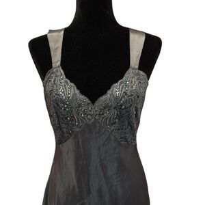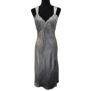Vintage Victoria’s Secret Satin Lace Slip Dress M Gray Silver 90s Y2K Midi