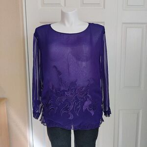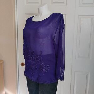 Vintage Victoria's Secret gold label lace trim sheer pajama top sz L