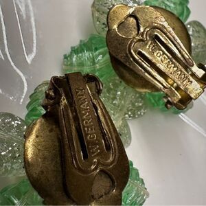 Vintage W. Germany Green and white lucite Floral Clip-On Earrings