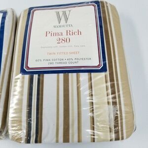 Vintage Wamsutta Pima Rich Striped Twin Fitted Sheets Lot 2 Brown Beige NEW