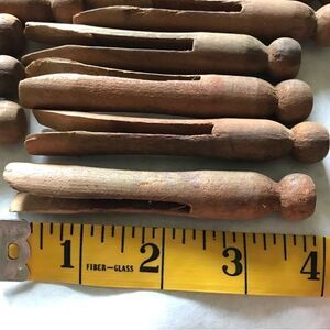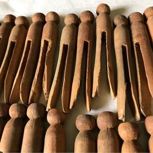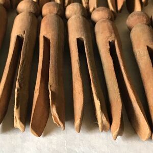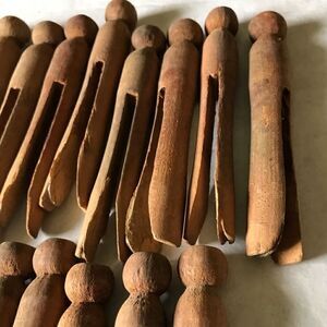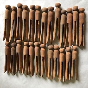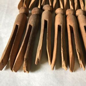 Vintage Weathered All Wood Round Top Push Clothespins (25)