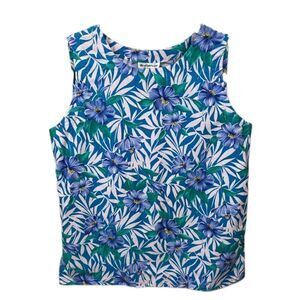 Weathervane Petites Tropical Sleeveless Blouse, size 4P- EUC. Blue tropical print on light purple background. There are a few snags in the fabric but they are not very noticeable when worn and may even be cut. Fabric is 100% cotton woven. Please see photos for approximate measurements
