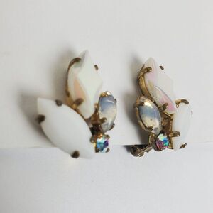 Vintage West Germany White Clear AB Crystal Rhinestone Glass Clip On Earrings