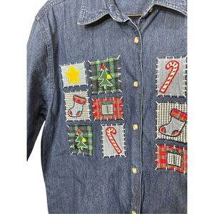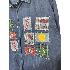Vintage Westbound 90s Christmas Patchwork Embroidery Denim Shirt Large. Great condition. Tags: vintage, Christmas, holidays, !!!!PLEASE SEE MEASUREMENTS!!!! Measurements Laying Flat Length: 29 1/2 inches Pit to pit: 23 inches Arm length: 23 1/2 inches Feel free to ask questions. Make an offer or bundle for a discount! WN Ai