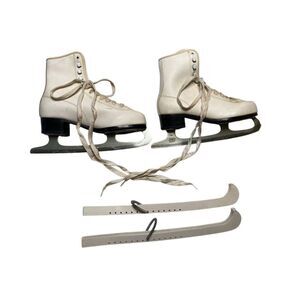 Vintage White Figure Ice Skates Womens Size 9 Made In Canada Winter Snow Sports