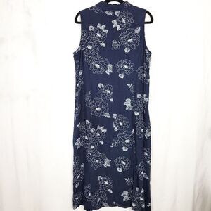 Vintage White Stag Navy Floral Linen Blend Button Up Sleeveless Shirt Dress