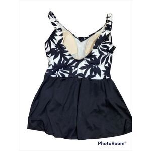 Good Vintage Condition, gathered sides, tankini look, gorgeous palm frond print, see pics.