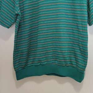 Teal with white and red striped pattern vintage Windbreaker sweat t-shirt. In very good condition, no major flaws. See photos for details.