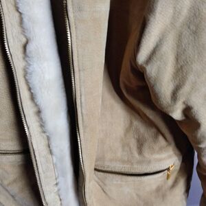 Vintage Leather jacket with faux fur lining. Inner and outer pockets. Heavy and warm. Chest 24" length 32"