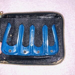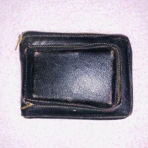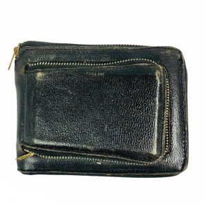 Vintage Womans Black Leather Wallet Folding Pill Holder Coin Slot Make Up