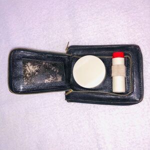 Vintage Woman Black Leather Wallet Folding Pill Holder Coin Slot Make Up Holder