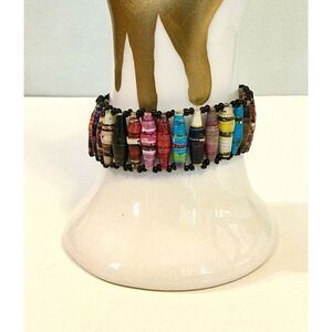 Vintage Womens Multicolor Handmade Recycled Paper Beaded Wristband Bracelet