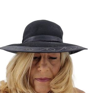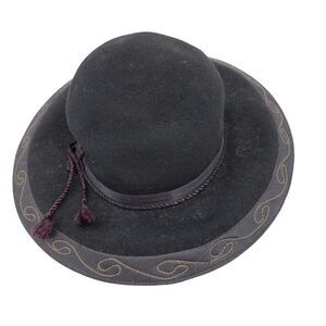 Vintage Womens Peruvian Hat Riding Wool Embroidered Ribbon Rim Rope Band Black 5