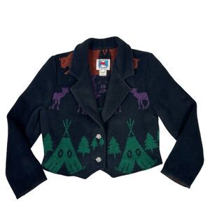 Vintage Wooded River Jacket Crop Native Buffalo Tee Pee Totem Womens Sz M