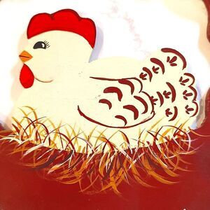 Vintage Wooden Hand Painted Chicken Wreath Country Farmhouse Cottage