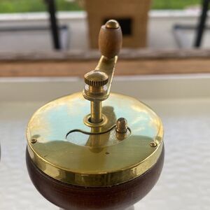 Salt 6”T, 2”W Pepper 6.5”T, 2 1/4”W Brown wooden set with gold tops. Fully operable. Has a few minor nicks like shown in pic. Made in Japan