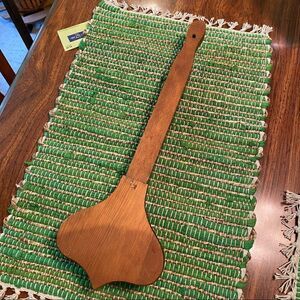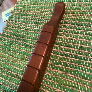 Previously owned in very good condition is all wood 5 slot mail holder and 5 brass key hooks. Measuring (+/-) 17-1/2" length x 5-1/2" wide at widest x 1-1/2" thick at thickest. There are a few slight surface scuffs.