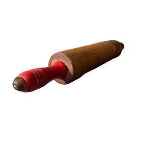 Vintage Wooden Rolling Pin 1940’s Red Handles AWESOME