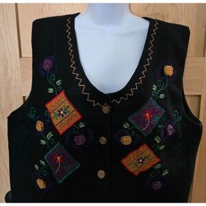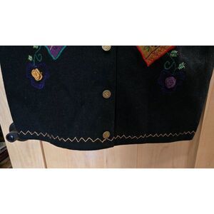 Vintage Wool Floral Embroidered Vest Colorful Patchwork Design & Gold Buttons