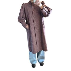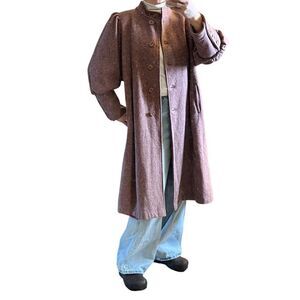 Vintage Wool Puff Sleeve Anthropologie Like Retro Maxi Long Coat Purple Heathered Specks Victorian Button Sleeves