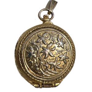Vintage Working LeJour Pop Up Gold Floral Scene Pocket Watch 17 Jewels Incabloc