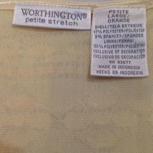 Vintage Worthington Petite Stretch lacy blouse in a pale yellow to cream color. In excellent preowned condition. Tagged size Petite Large.