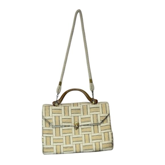 Elevate your look with this elegant vintage Italian woven handbag, crafted with intricate straw-style texture and timeless neutral tones.