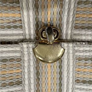 • Gold-tone turn-lock clasp closure with slight vintage patina