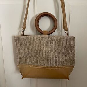 Vintage Woven Women’s Handbag with wood handles