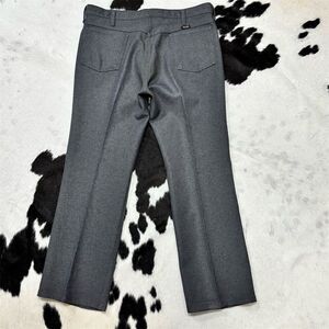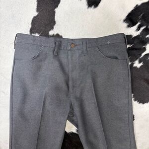 Keywords: Wrangler, dress pants, men's fashion, bootcut, gray pants, regular fit, Western style, polyester, vintage, made in USA, casual wear, office wear, classic design, men's clothing, pre-owned.