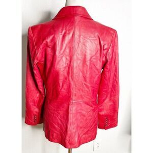 Vintage Y2K ALFANI Cherry Red Soft Leather Blazer Jacket Size Medium