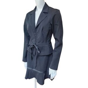 Vintage Y2K A-list black skirt suit set with five hook and eye closures and a ribbon on the blazer.
