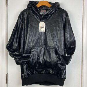 Vintage Y2K Brooklyn Xpress Men’s Black Faux Leather Hoodie Pullover Long Sleeve Top